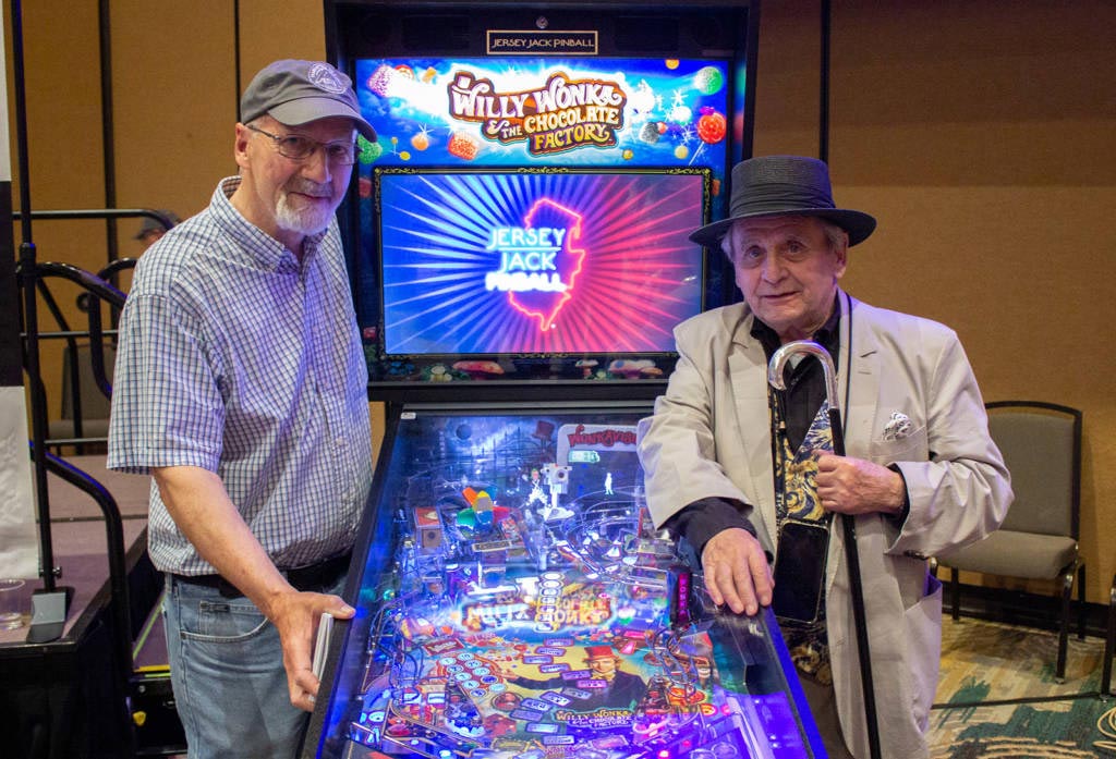As seen in the photo with raffle winner Gary Walters, McCoy participated in the presentation of the Jersey Jack Pinball Willy Wonka machine, adding a touch of celebrity glamour to this highlight moment of the festival.